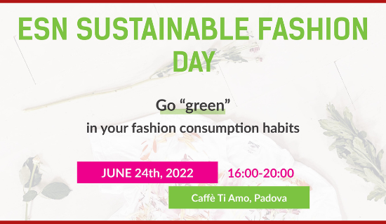 Venerdì 24 giugno l’Associazione ESN Padova, in collaborazione con Progetto Giovani, organizza il Sustainable Fashion Day, un incontro dedicato alla moda sostenibile e a basso impatto ambientale.