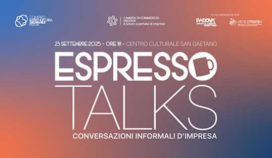 Martedì 23 settembre, dalle 18:00 alle 20:00, il Centro Culturale Altinate San Gaetano ospita l’evento “Espresso Talks“, un ciclo di conversazioni informali pensato per ispirare e connettere giovani imprenditori e professionisti, a cura del Comitato per l’Imprenditoria Giovanile e della Camera di Commercio di Padova.