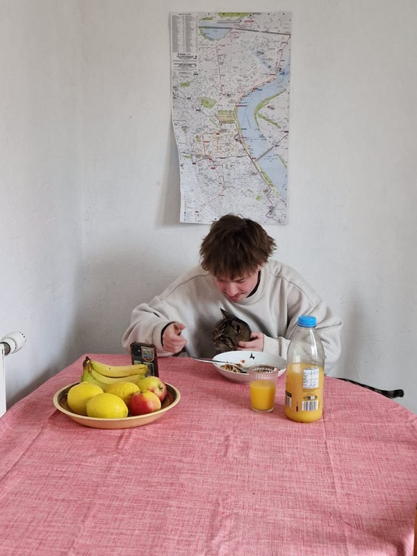 Vi mando anche l’unica foto che ho al momento, del mio coinquilino olandese e del gatto del quartiere che ha deciso di abitare insieme a noi 😄