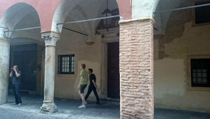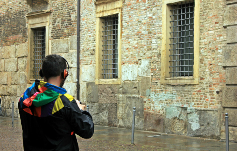 «L’obiettivo è stato di raccontare una storia, non di documentare il posto, ma di lavorare in maniera soggettiva partendo da un luogo preciso» spiega Fabio Orsi. Musicista e fotografo, ha animato per tre giorni un workshop di scrittura e ascolto sul paesaggio sonoro della Contrada Antenore. Dopo qualche passeggiata nel quartiere per scattare una serie di foto e catturare suoni, il gruppo ha lavorato alla realizzazione di una traccia sonora accompagnata da tre foto, visibile al pubblico qualche giorno in via del Santo.